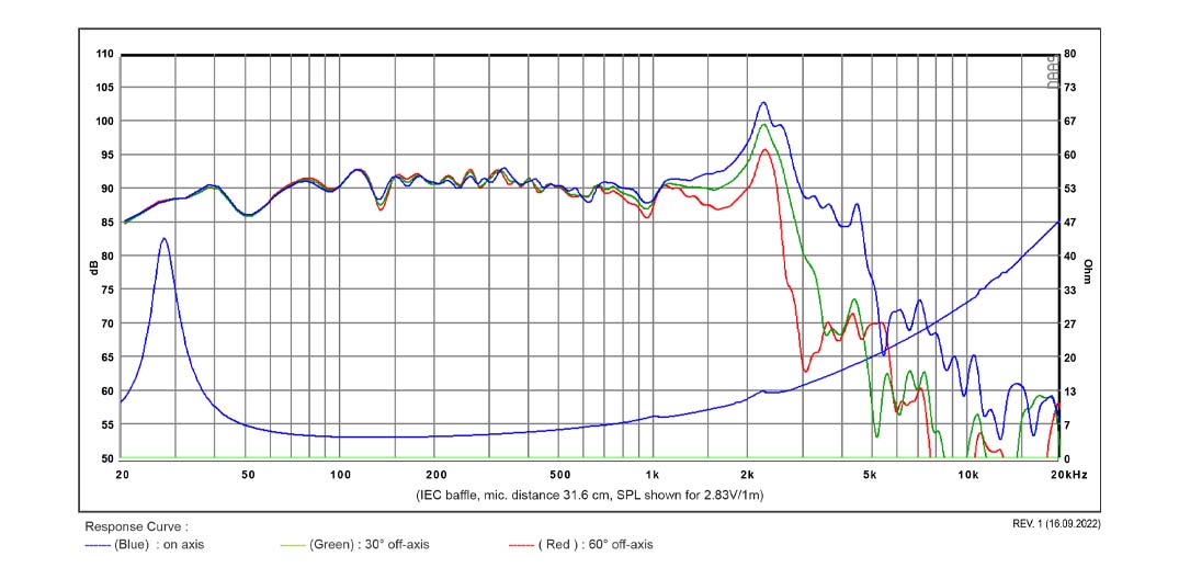 - Free air resonance, Fs 27.4 Hz