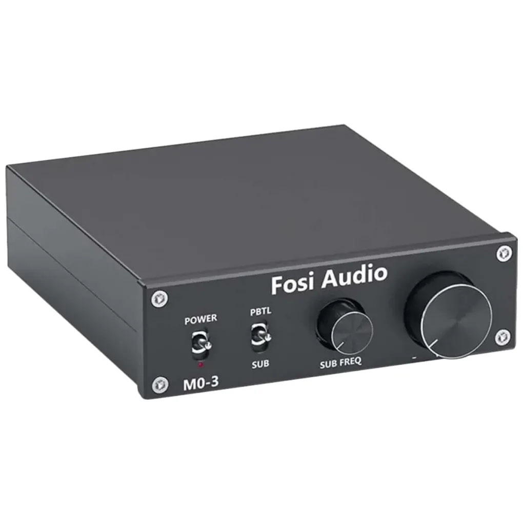 Selvom M03 fylder minimalt, rummer den funktioner, der normalt findes i større forstærkere. Du får blandt andet et justerbart lavpasfilter (20–300 Hz) og en dedikeret SUB-frekvenskontrol, som gør den særligt velegnet i systemer, hvor pladsen er begrænset – f.eks. i hjemmebiografen, på kontoret eller i et kompakt HiFi-setup.