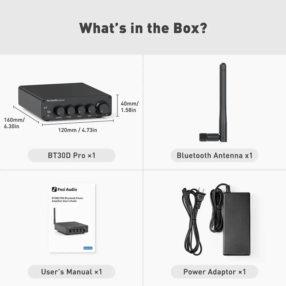 Fosi Audio BT30D PRO 2.1 effektforstærker er et oplagt valg for alle, der søger en stilfuld, kraftig og fleksibel opgradering til deres hjemmebiograf eller desktop-lydsystem.
