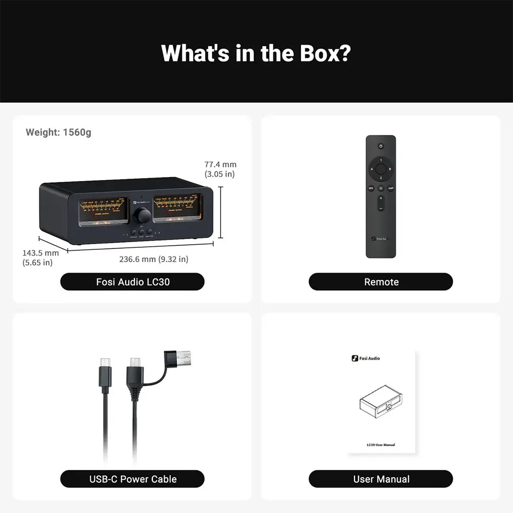 Fosi Audio LC30 er en fleksibel forstærker og højttalerswitch, skabt til lydentusiaster, der ønsker fuld kontrol over deres audioopsætning. Med sine klassisk inspirerede dual VU-metre og solide konstruktion kombinerer den både æstetik og funktionalitet i ét design.