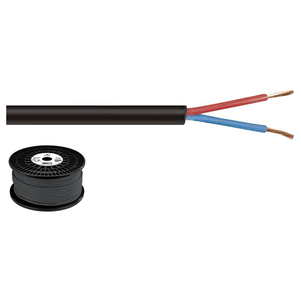 MONACOR SPC-515/SW er et sort højttalerkabel i Top Quality-serien med 2 x 1,5 mm² OFC-kobberleder, udviklet til professionel brug på scene, i installationer og i 100 V PA-systemer. Kablet leveres på en 100-meterrulle med metermærkning og højt fleksibel konstruktion – egenskaber, der gør det til et pålideligt førstevalg for teknikere og installatører.