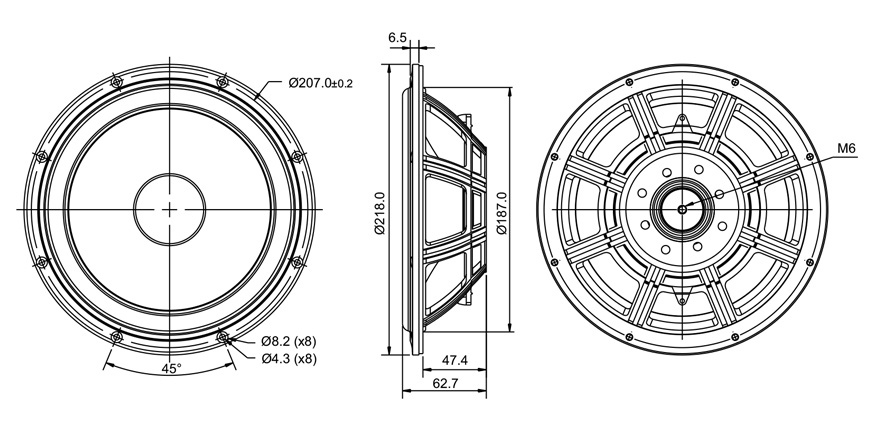 - Maximum mechanical cone excursion,Xmech ± 11mm