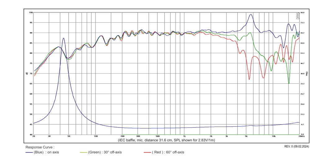 - Free air resonance, Fs 44 Hz