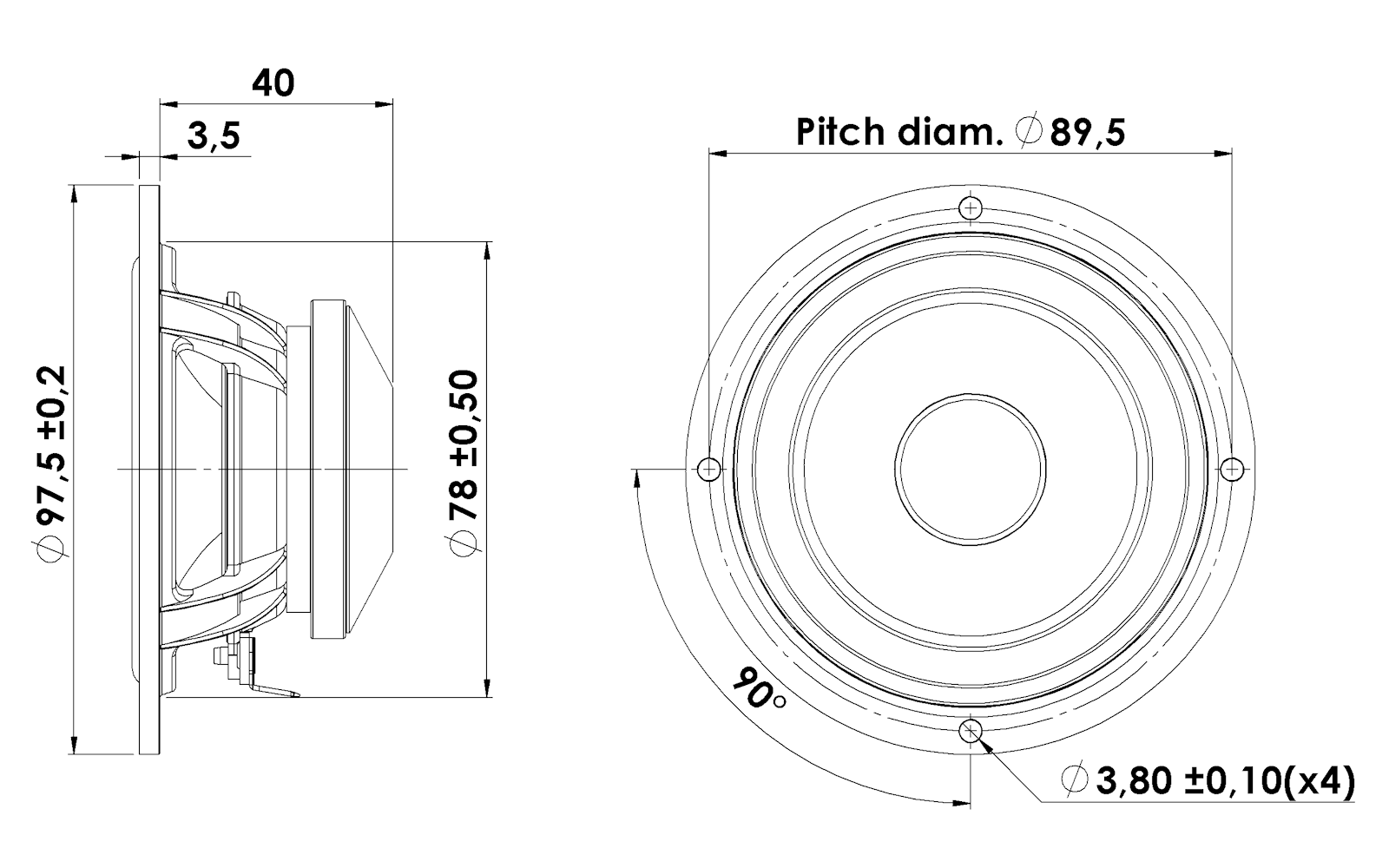 Basrefleks: Vbox=0.9 ltr, fb=115 Hz, f(-3dB)=127 Hz